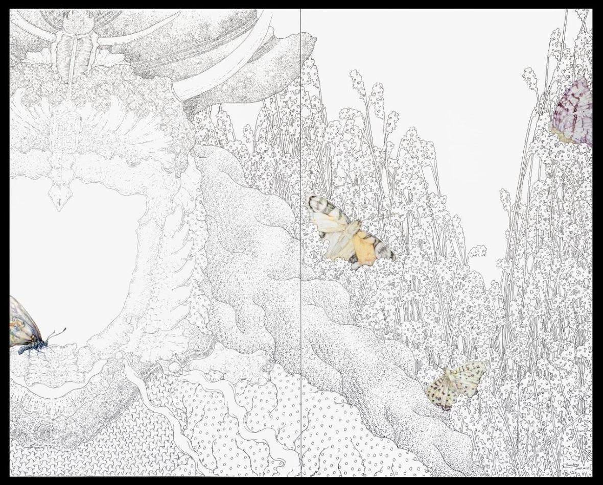 Butterflies #1, ink and oil on canvas, 213 x 264 cm , 2009